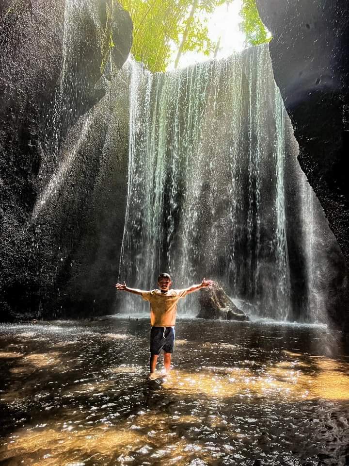 Bewonder de magische Tukad Cepung-waterval, verscholen tussen hoge rotswanden. Het licht dat door de kloof naar binnen valt, maakt dit tot een van de meest fotogenieke plekken van Bali.